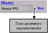 Двоичный переключатель служит для занесения в базу данных информации, которая может принимать только значения «да» или «нет», «истинно или «ложно. Например, двоичный переключатель «Проверка при вводе приходов хранит информацию о том, проверила ли бухгалтерия документ, «да» или «нет». Если в поле переключателя установлена «галочка», то поле базы данных содержит значение «да», иначе — «нет».
